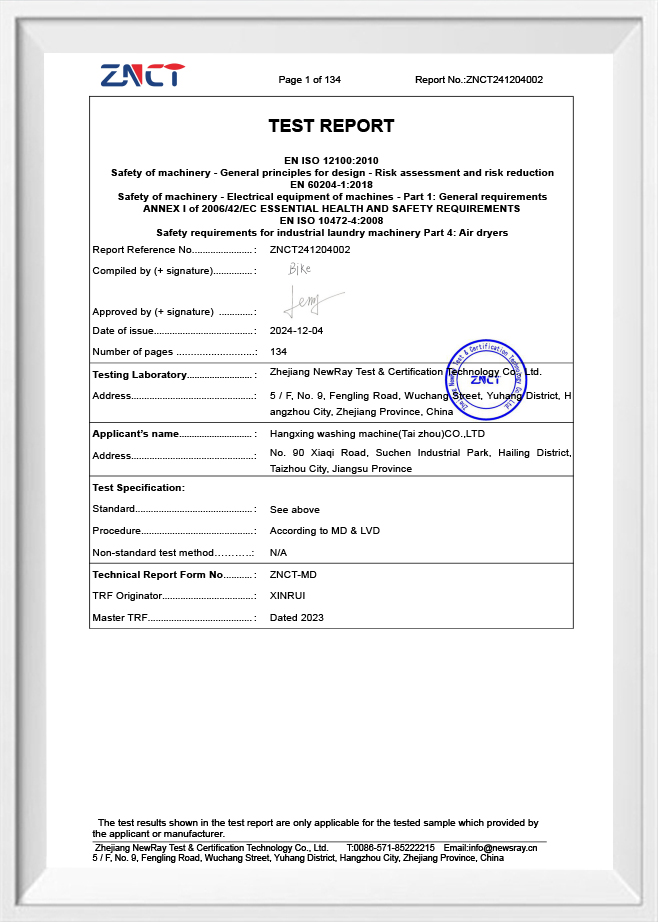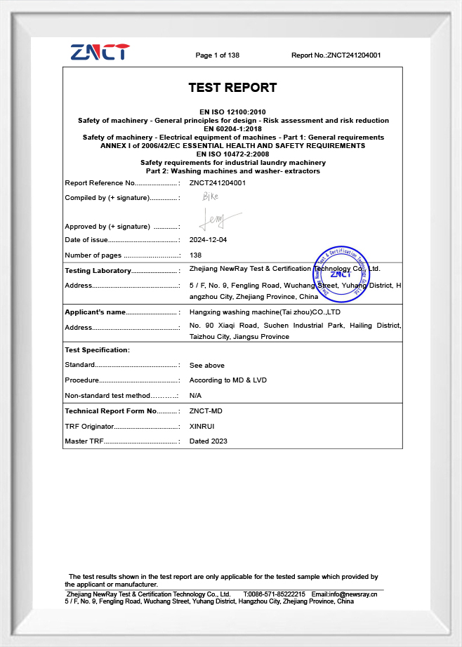 Zpráva o zkoušce průmyslové pračky